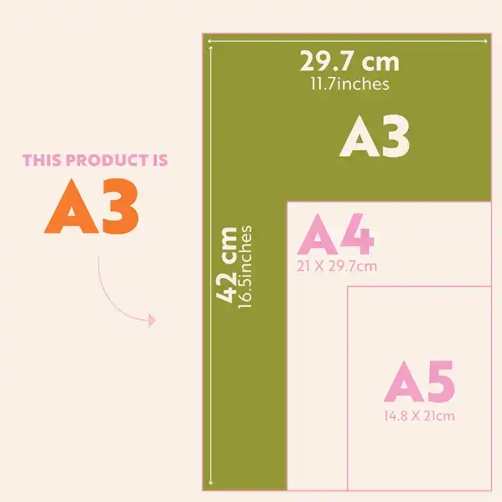 - A3 size: 29.7 x 42 cm // 11.7 x 16.5 inches