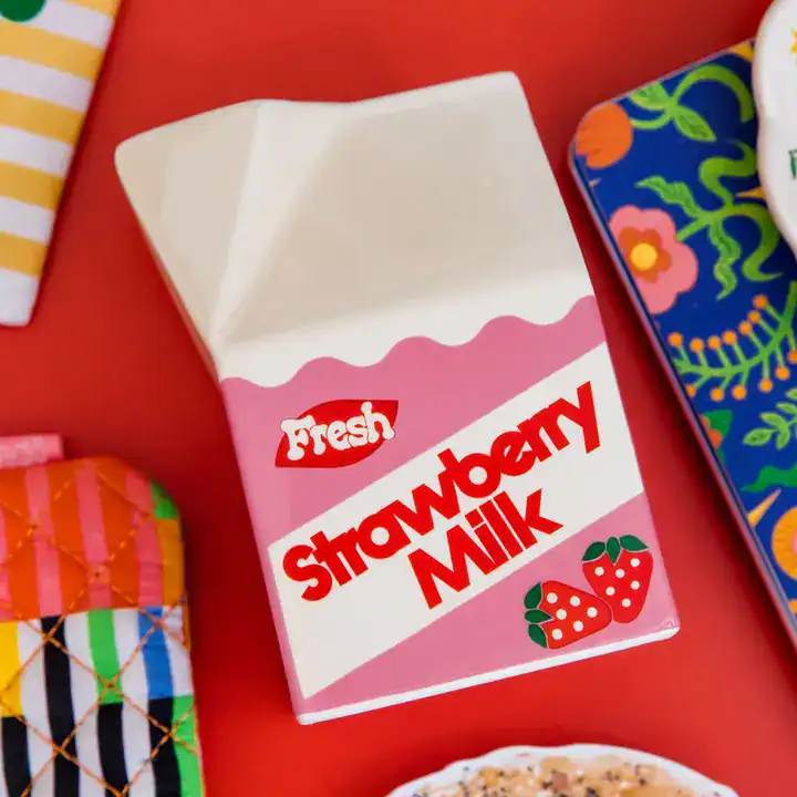 Crafted from glazed ceramic, it’s perfect for displaying fresh flowers, dried stems, or standing alone as a decorative statement piece. Whether styled in a cozy nook, bright kitchen, or creative workspace, the Strawberry Milk vase instantly lifts the mood and adds a touch of whimsy to your home décor.