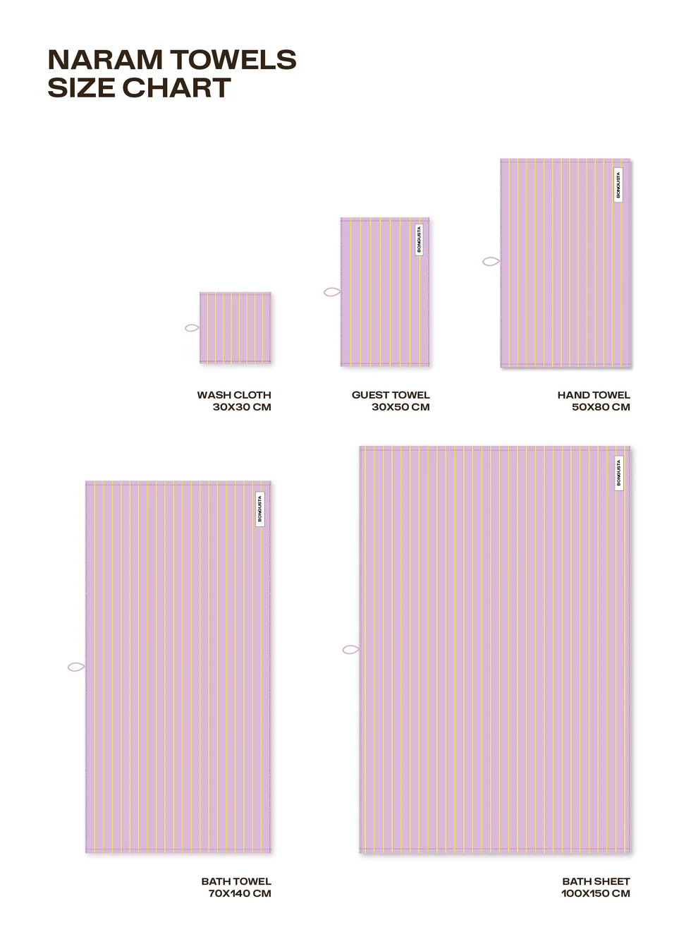Team Bongusta has pre-washed all Naram Towels to help them stay more absorbent. However, we recommend you washing them before use. Wash at max 60 degrees Celsius. Use minimal detergent for a long last and soft feel. Tumble on low temperatures and hang out to dry to preserve colour and fibres. If a loop snags, use scissor cutting instead of pulling. The threads are secured on the back and will not run, when cut.