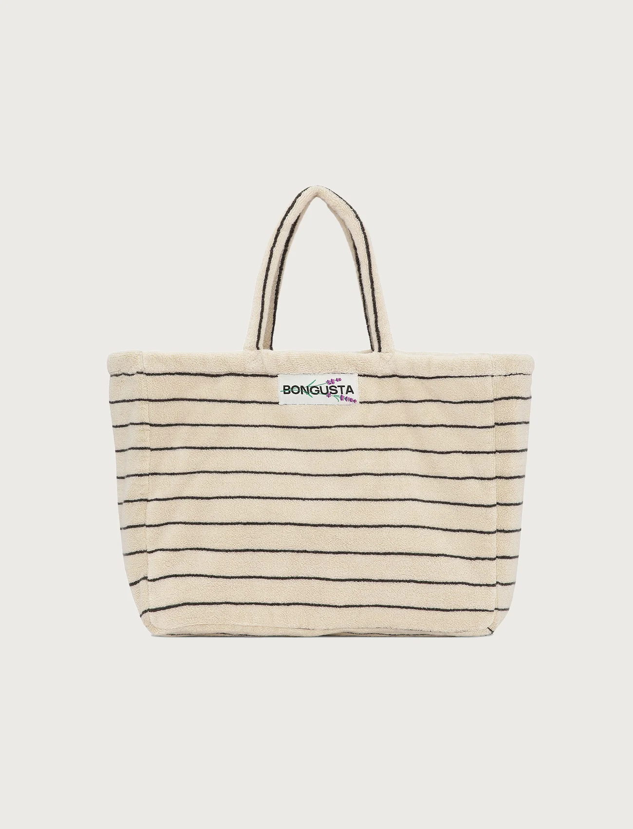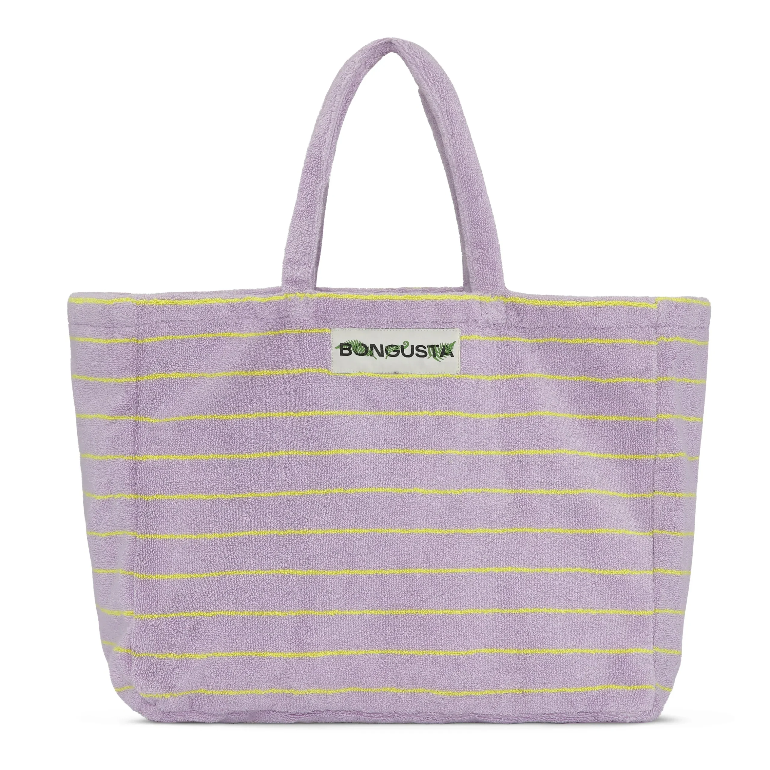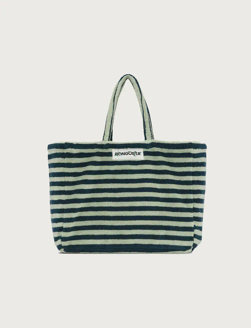 It is available in our signature Bongusta colours, classical stripes, and has a woven brand logo. The bag has an open, single compartment for easy access.