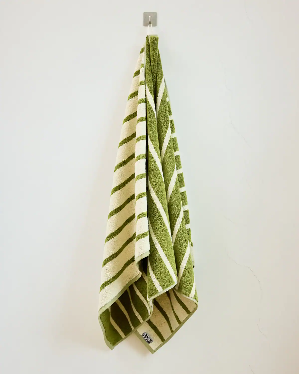 100% cotton terry. 700 GSM (washcloth 600GSM). Made in Portugal. Comes with hanging loop.