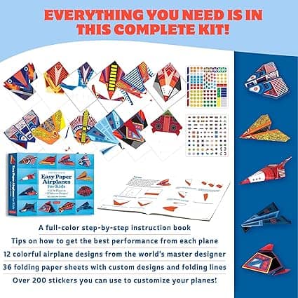 Fold and fly amazing paper airplanes in minutes! Everything you need is in this kit!