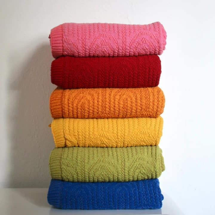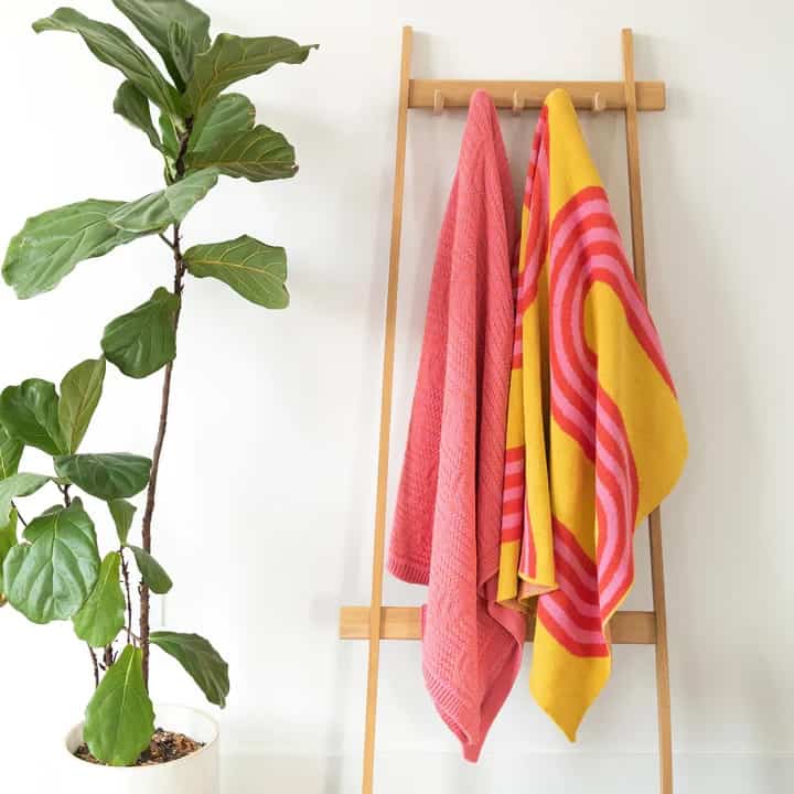 Our arch pattern is inspired by an architectural arch, but much easier to bring into your home, and in the soft form of a throw blanket. 2 variations of the color make for an electric, saturated look.