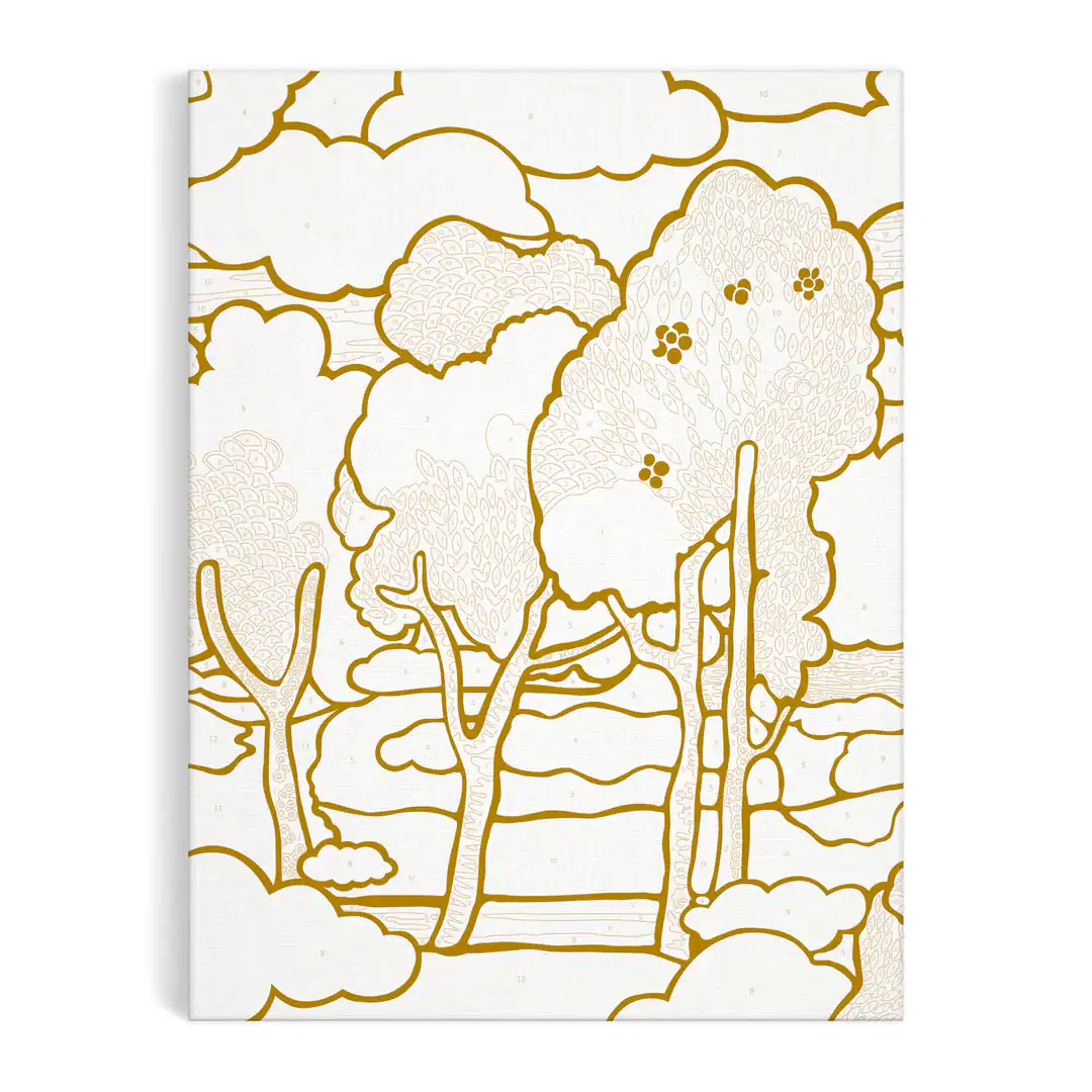 The premium 9 x 12 inch canvas board presents clearly delineated numbered sections that correspond perfectly with each paint color, ensuring accurate representation of the pattern’s sophisticated floral elements.