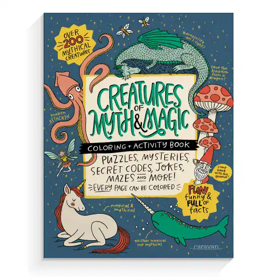 Save the kingdom from a dragon! Escape the Kraken’s whirlpool of death! Open this activity book and step into a world of myth and magic! Perfect for those who love dragons, unicorns, fairies, goblins, and ADVENTURE!