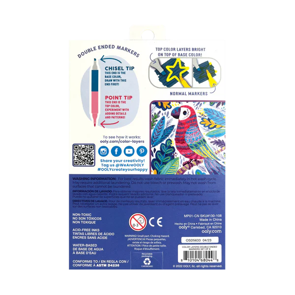 - Each marker has a chisel tip for the base layer and a point tip for the top layer