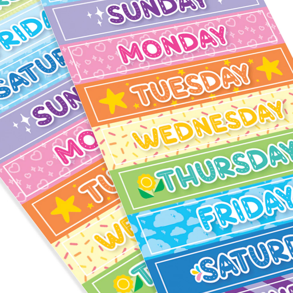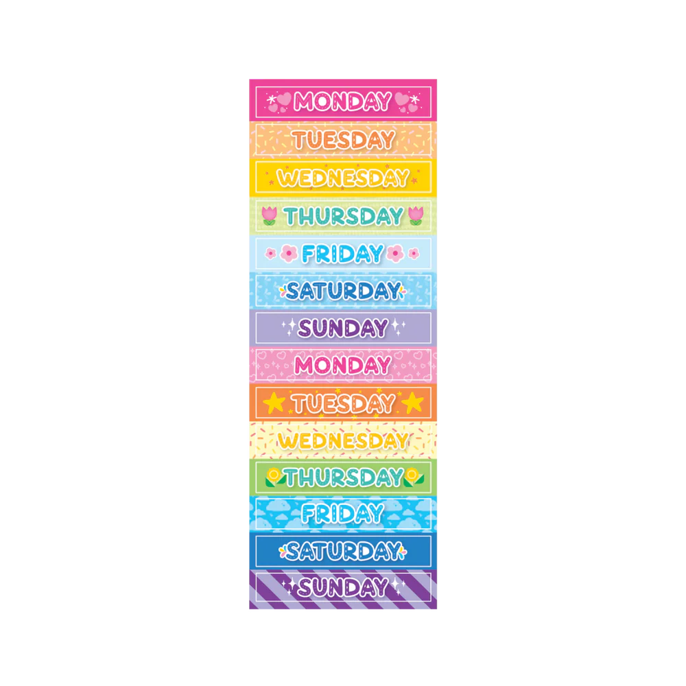 - Sticker sheets feature two sets of every day of the week