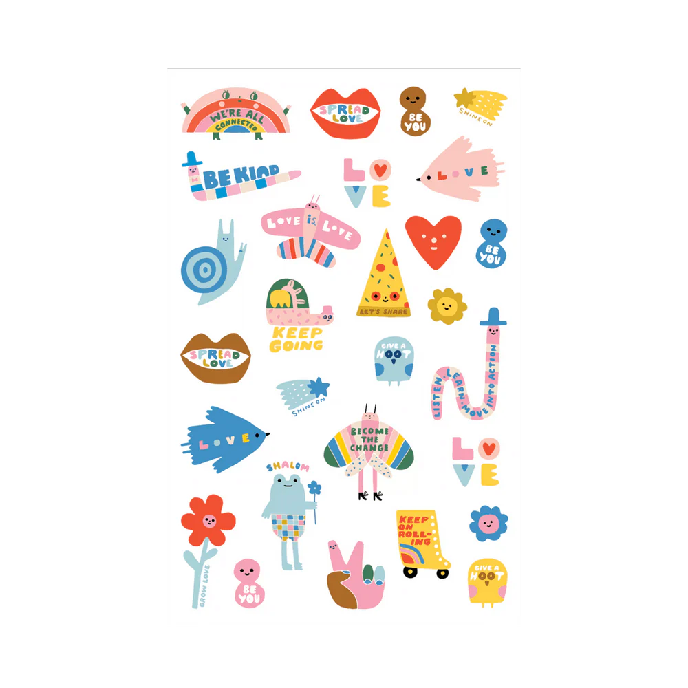 In collaboration with toy and product designer, Suzy Ultman, this inspirational sticker sheet features epoxy so these stickers not only help you feel good, they also look great!