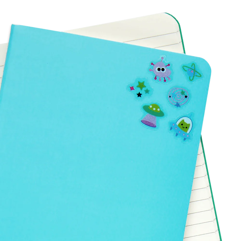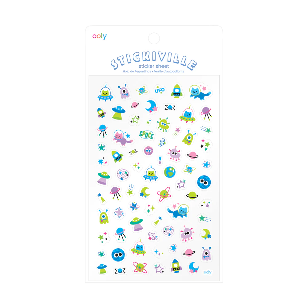 3…2…1… Stick! This space buddies vinyl sticker sheet from the Stickiville collection launches you into decorative fun! Adorn your notebook with interplanetary fun or bring some personality to your backpack and lunch box. There’s no limit to the whimsy these space stickers can bring to accessories like school supplies, journals, and diaries!