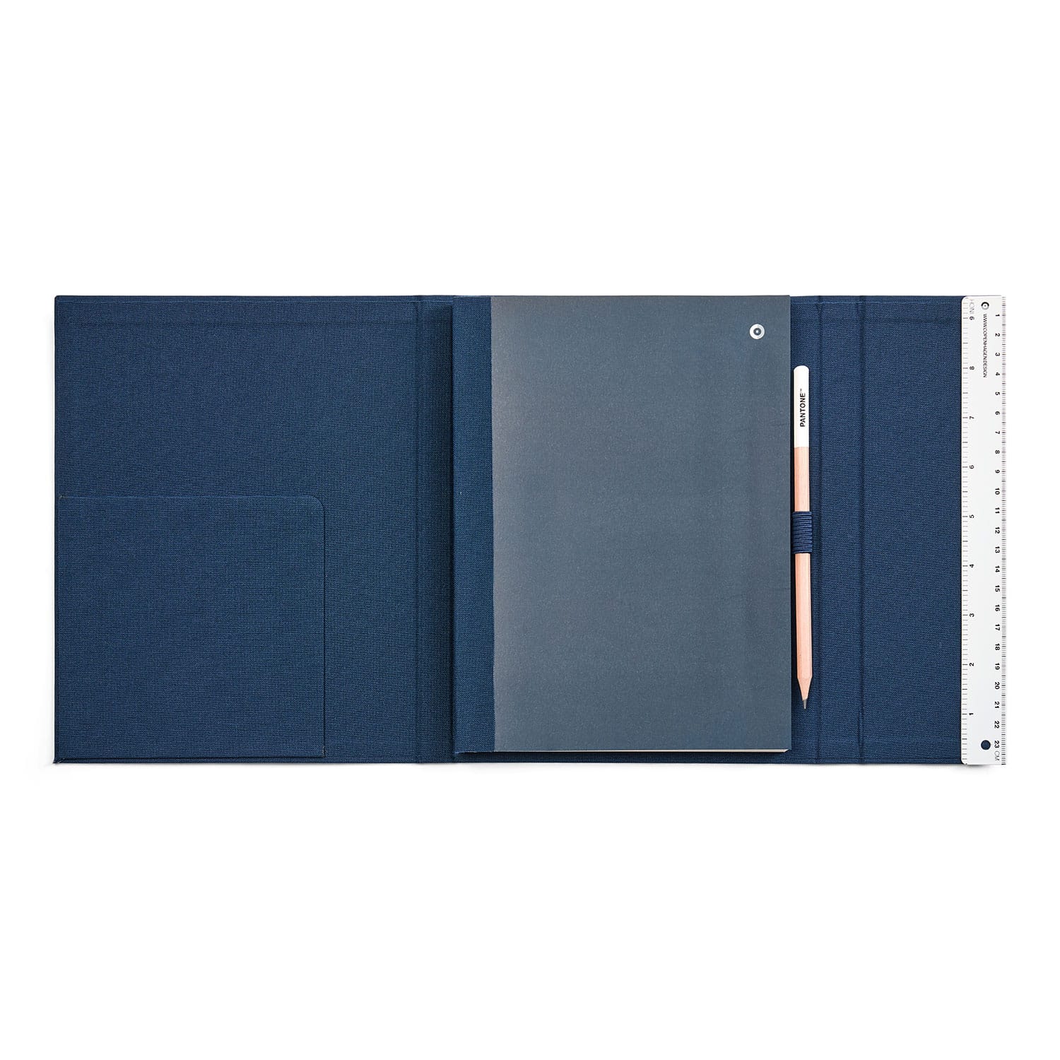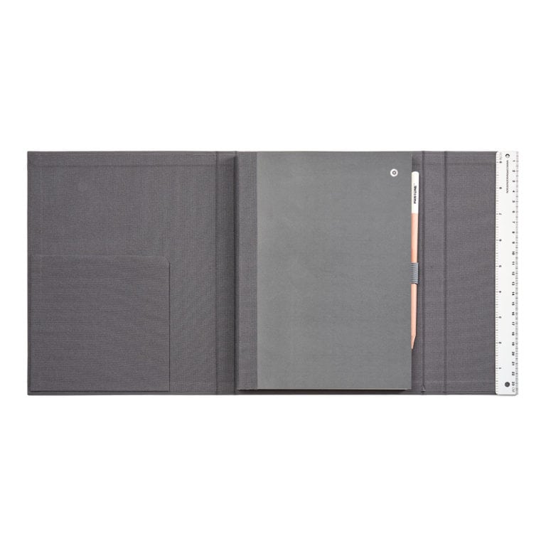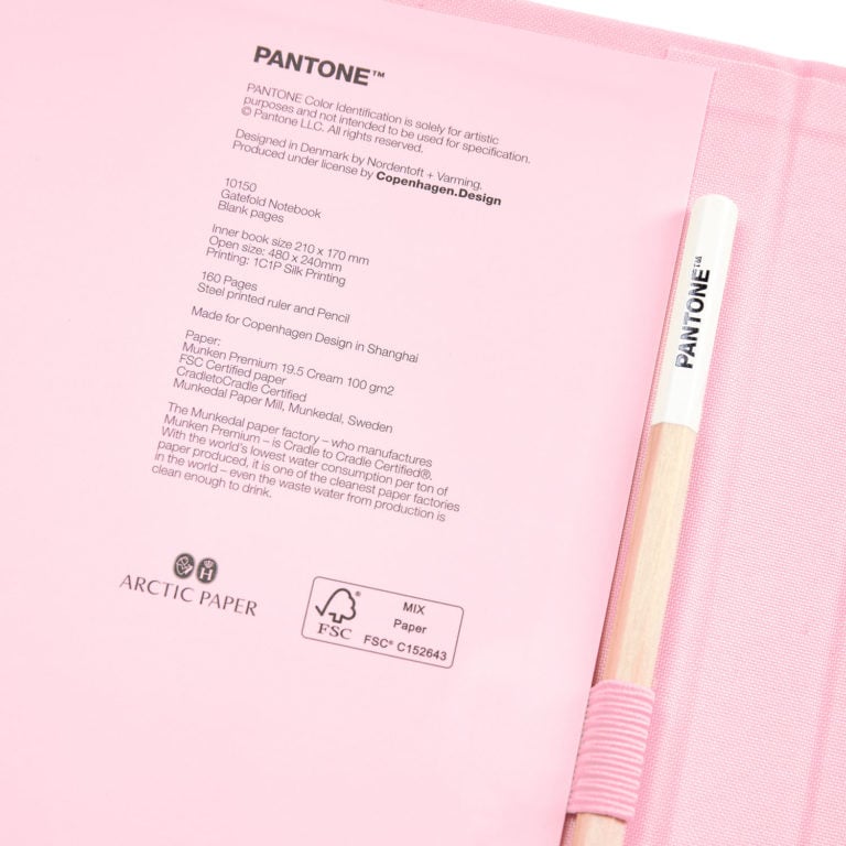 - As a special highlight, PANTONE has attached a 24 cm long metal ruler on the last page of the notebook and included a pencil in a rubber loop holder for direct writing.