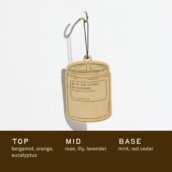 Introducing Air Fresheners: a flame-free collection designed to scent small spaces, like closets, bathrooms, gym lockers, trash cans, hotel rooms, and anywhere else that needs a little fragrance boost. Air Fresheners are pre-packed in pairs, featuring an iconic P.F. Candle-shape and signature kraft paper look.