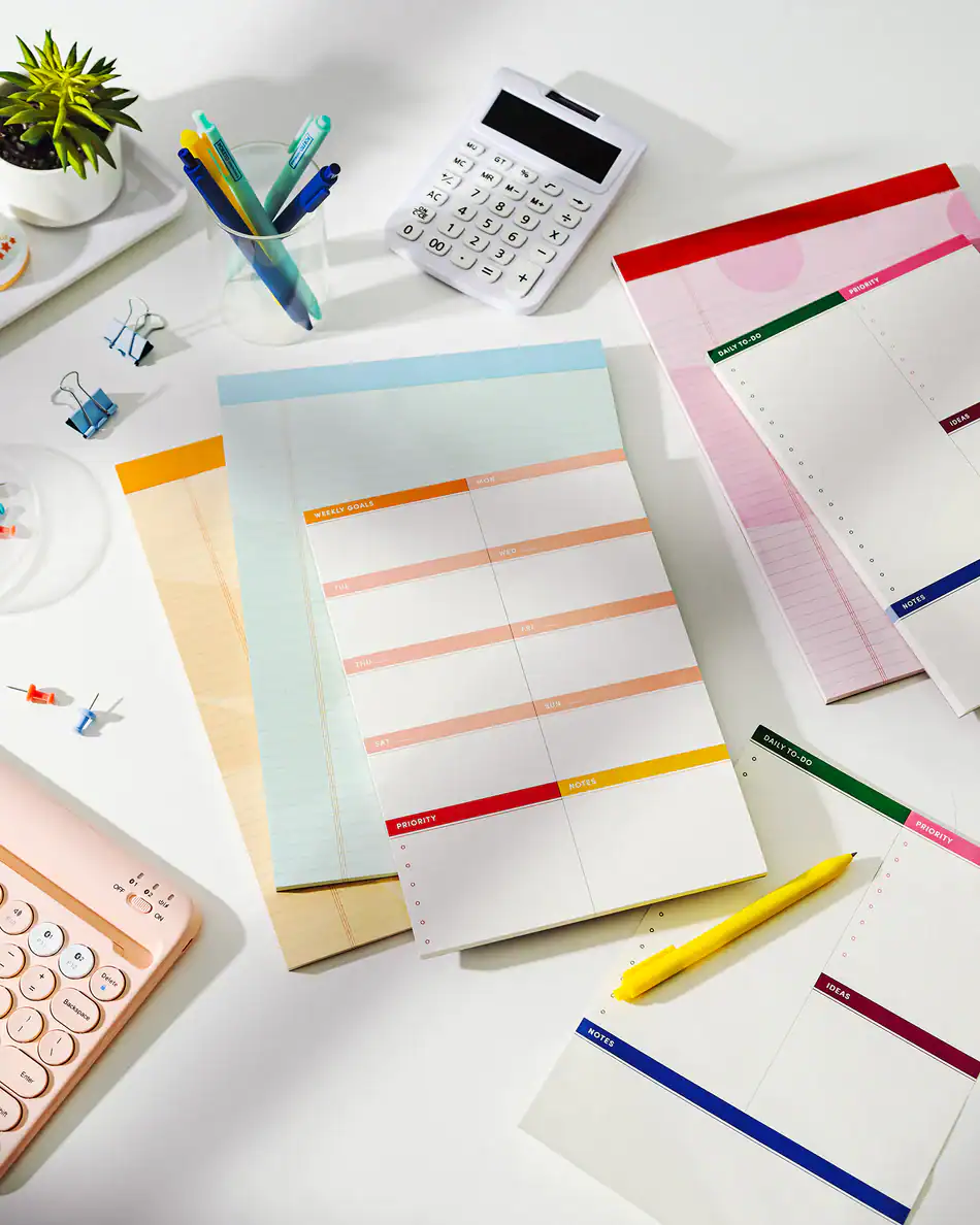 Give yourself the flexibility to start fresh each week with tear-away sheets categorized to keep your thoughts in order. Work down your lists by goal, day, or priority. The color-coded sections let you approach plans at a glance, track your progress, and keep reminders all in one place.