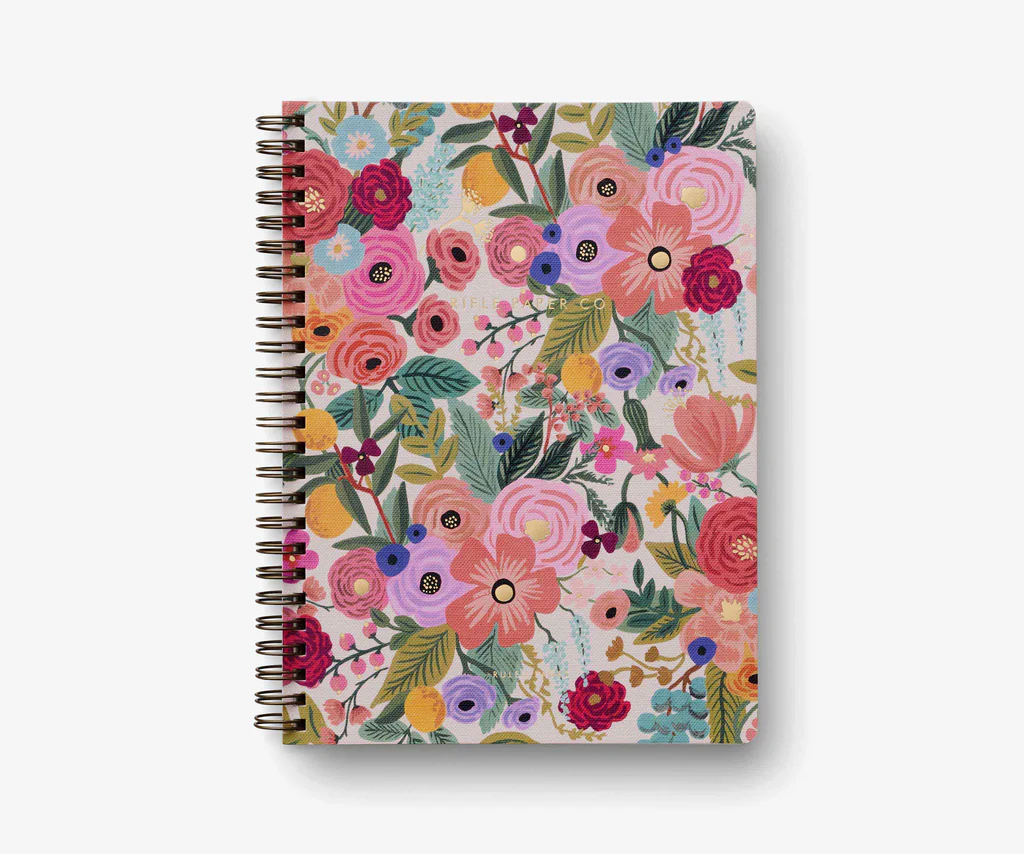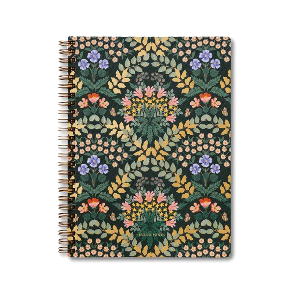 Hit the books with this lovely softcover spiral notebook from Rifle Paper Co., featuring full-colour covers with gold foil accents, printed on a heavy-weight textured paper. The notebook has 150 ruled pages, a sturdy double-spiral binding, and pockets for extra storage.