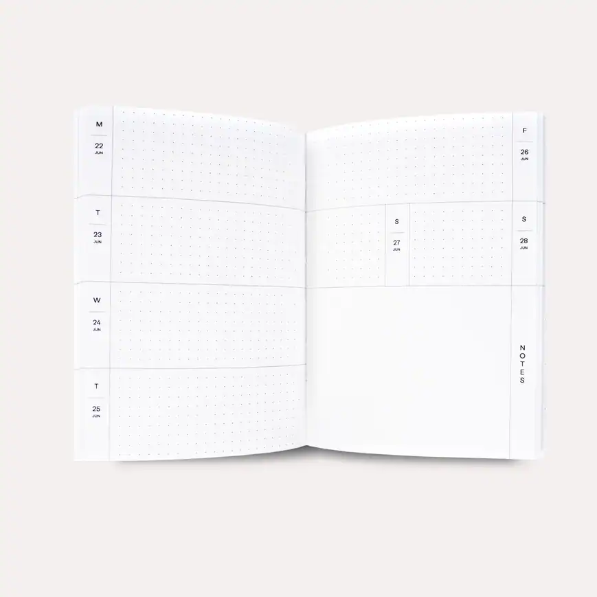 A fresh floral moment for their 2026, the Damson Pocket Planner features a graphic botanical-inspired print in deep green, with a compact A6 format perfect for bags, pockets, and planner pouches.