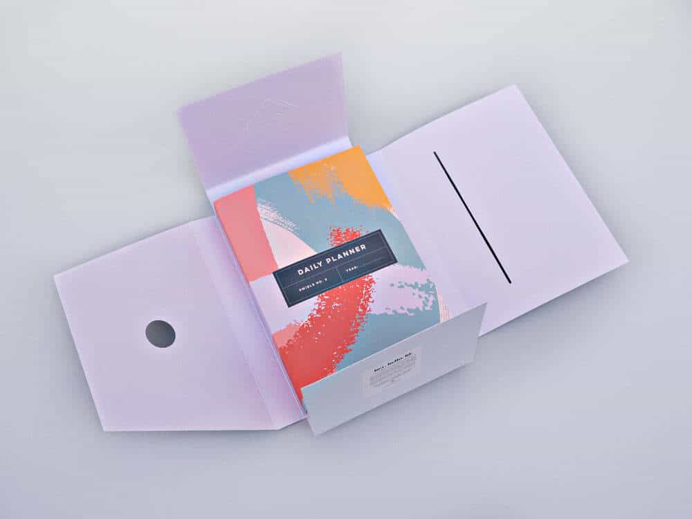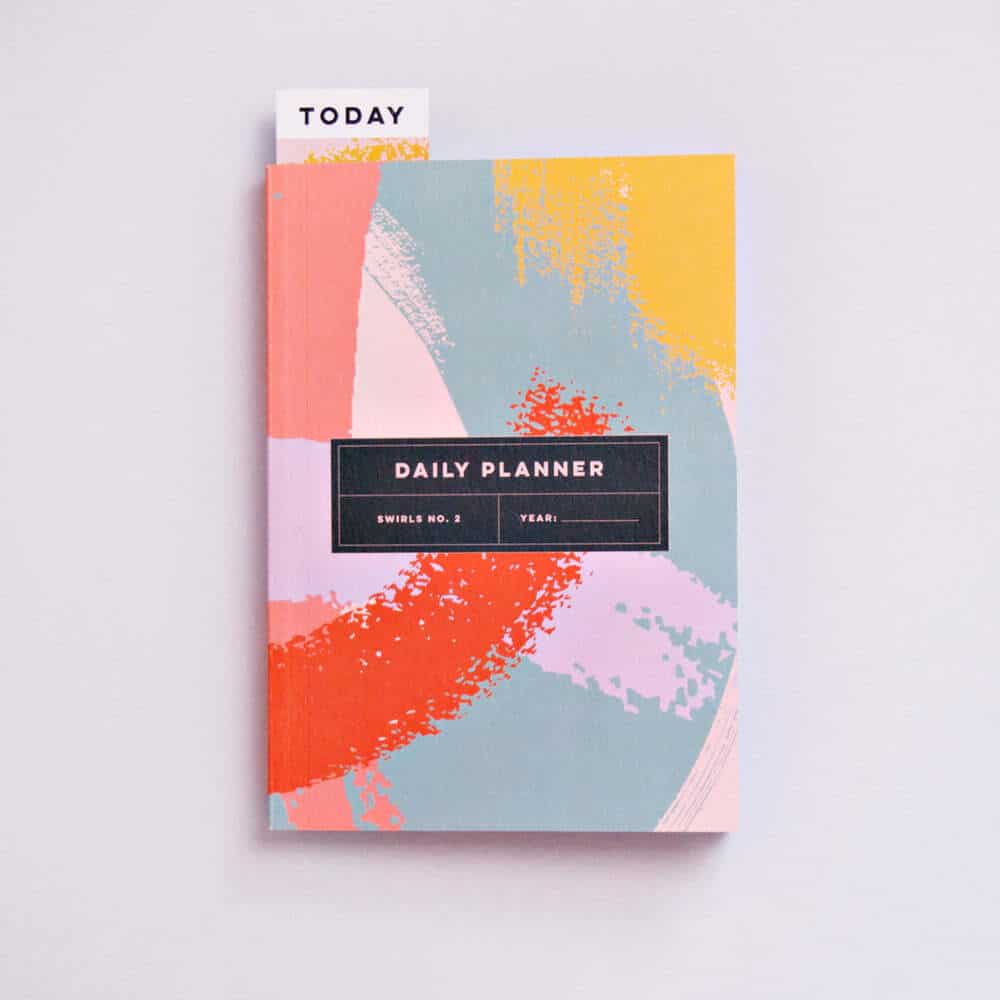 Need to get organized? Then you need this daily planner book. It features a brushstroke print on the cover, and has a contrast peachy pink inside cover.